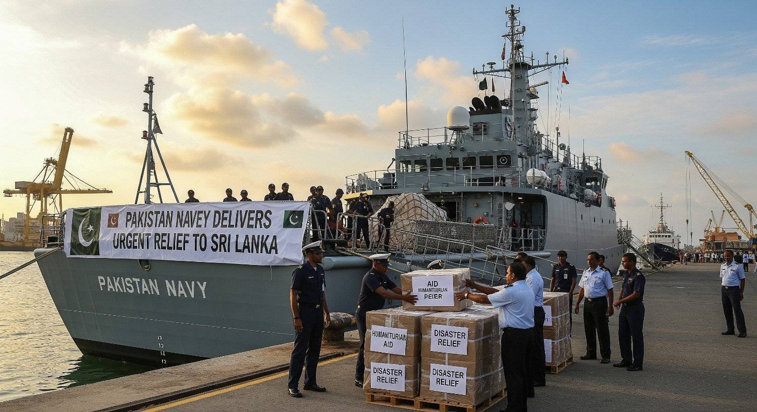 Pakistan Navy’s humanitarian aid has reached Sri Lanka following Cyclone Ditwah’s devastating impact, sending a strong message of solidarity. Warship PNS Saif docked at Colombo Port, delivering vital supplies to flood-affected families immediately.