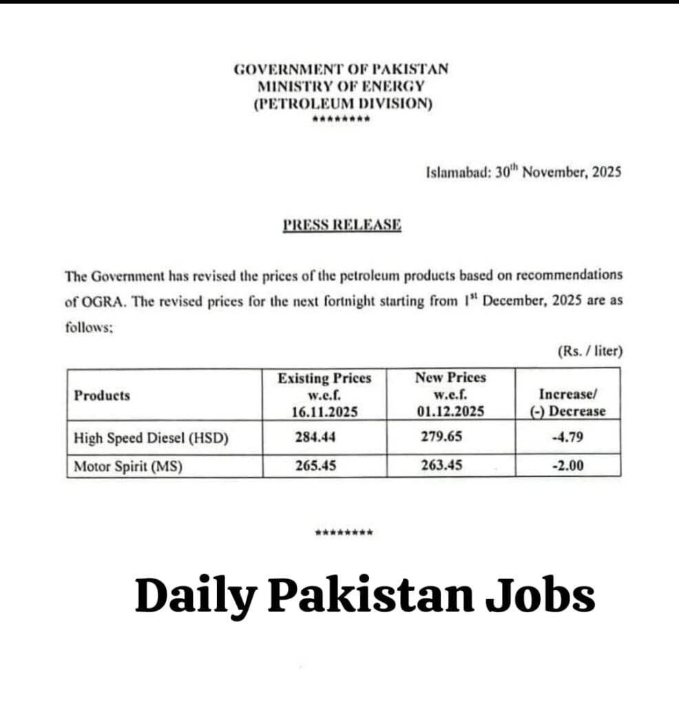 High-speed diesel (HSD) is expected to see a decrease of approximately Rs3.70 per litre, while petrol prices could fall by nearly Rs4.3 per litre. These changes come after significant increases since June 1, 2025 – around Rs12.50 per litre for petrol and Rs29 for HSD. Kerosene and light diesel oil (LDO) are also projected to decrease, by Re1 and Rs6.35 per litre, respectively, according to preliminary estimates from industry insiders.